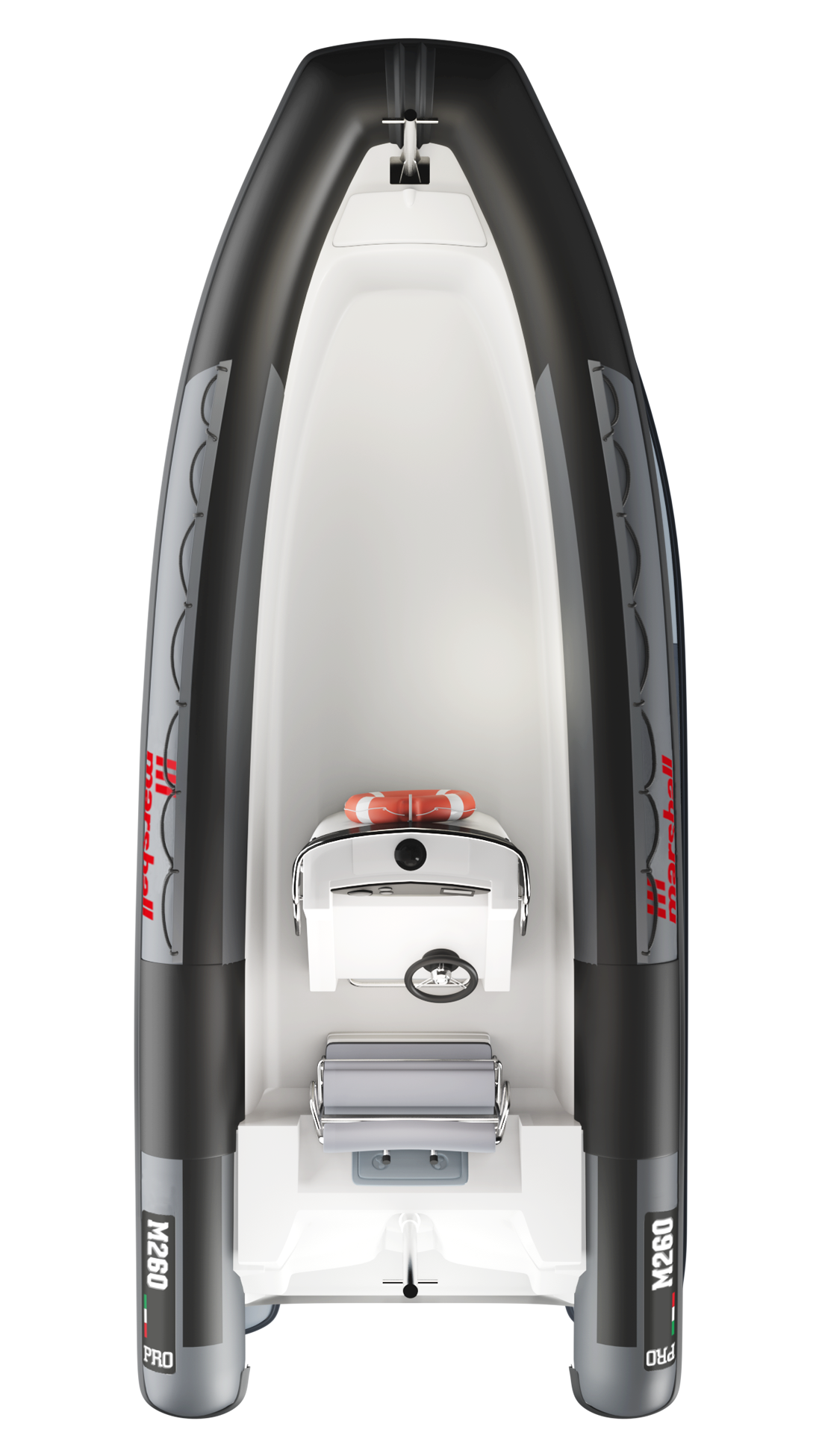 PRO označuje najnovejšo generacijo profesionalnih gumenjakov Marshall – in M 260 OPEN PRO je njen odličen predstavnik.